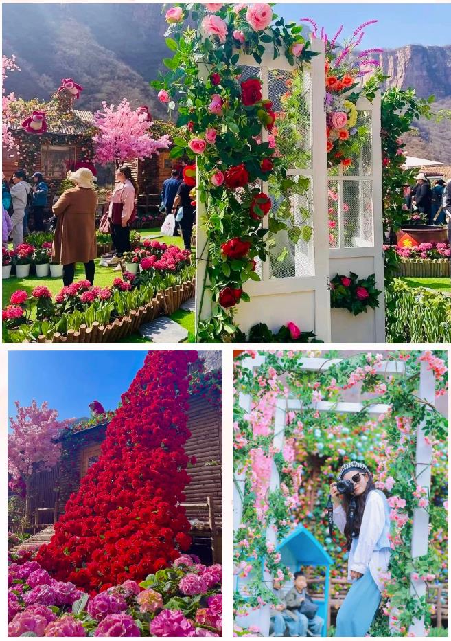 寶泉花海小院靜謐而夢幻,場地使用了大量的郁金香和繡球花點綴,搭配四大主題花屋和場景打卡道具,以及時下最熱門的玫瑰瀑布、玫瑰廊道,讓游客來了就愛上這里。