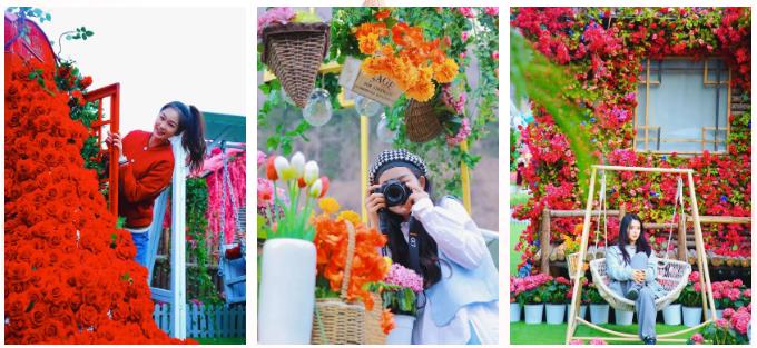 今年場地內(nèi)首增花海周邊文創(chuàng)店,郁金香手機殼、春日浪漫明信片,寶泉IP鹿小寶玩偶等卡通周邊,屋外每走兩步就是打卡拍照的地方,寶泉一束春天超大花束拿捏春日氛圍感。
