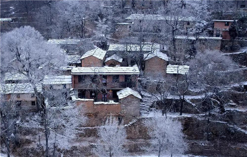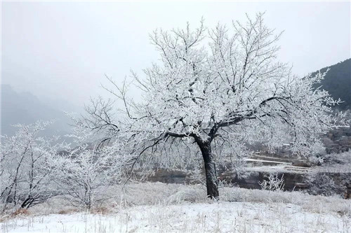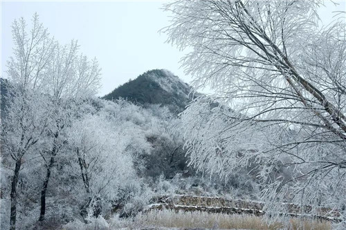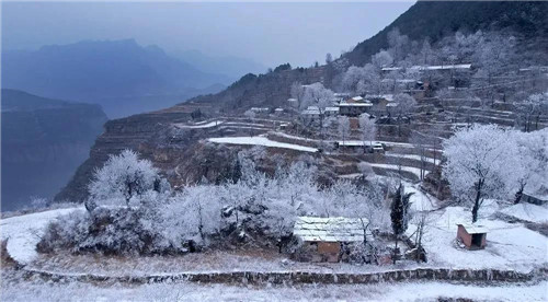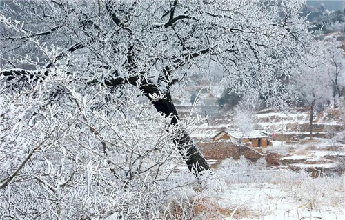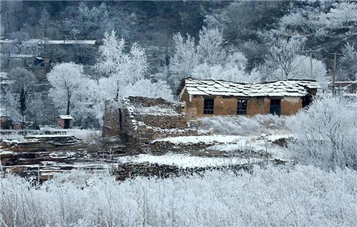 山道、村莊、樹(shù)枝上,積滿了潔白晶瑩的霜花,山風(fēng)吹拂銀絲閃爍,猶如被塵世遺忘的仙境,讓人無(wú)不感嘆大自然的絕妙。