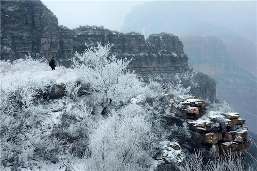 站半山腰遠(yuǎn)眺,皚皚白雪,抹平了梯田的褶皺,掩埋了亂石的嘈雜,銀裝素裹的太行山,顯得簡(jiǎn)潔秀氣了許多。