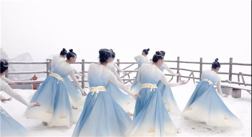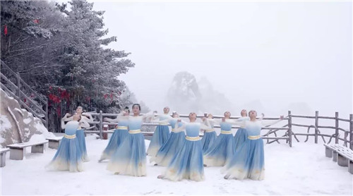在大雪紛飛的老君山頂,如詩(shī)如畫的美景,配上輕盈優(yōu)美的舞蹈,雪美,人美,舞更美……