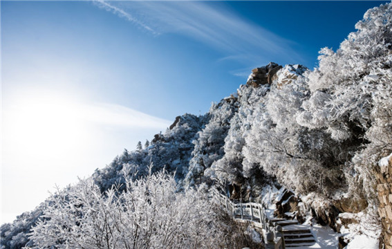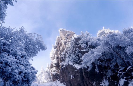 雪花累積在山峰之上,勾勒出千里江山的輪廓,又停留在樹枝之上,開出限定的“白色花朵”。