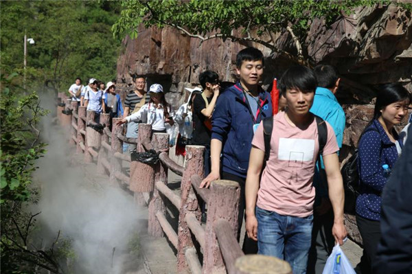 5月1日,“五一”小長假最后一天,云臺山旅游熱度依然不減,當(dāng)天接待游客4.31萬人次。“五一”假日三天,云臺山景區(qū)共接待游客16.97萬人次,其中,省內(nèi)游客占到52.6%,省外以山東、河北、山西、安徽、江蘇地區(qū)為主。4月29日,云臺山景區(qū)還迎來了今年第4趟“云臺山號”武漢專列的400多名湖北游客。