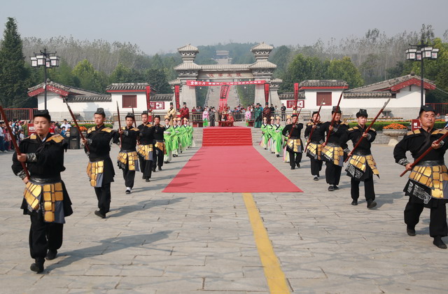 大氣的梁王迎賓情景劇表演,霸氣的梁王,端莊的王妃,威武的武士,美麗的宮女,共同迎接來自五湖四海的賓客,圍觀游客看的津津有味。