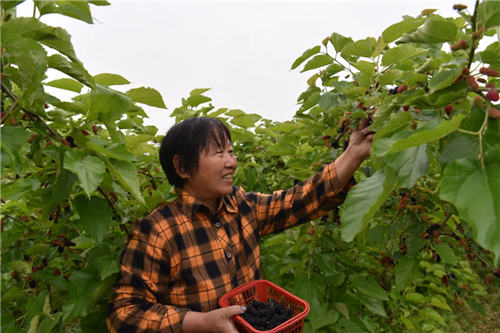 村民馮大娘告訴記者:“我今年60多歲了,年紀(jì)比較大了,就在桑葚種植園采摘桑葚,每天能掙六七十元,一個(gè)月能掙2000多元,活也不累,既能在家門(mén)口掙錢(qián)補(bǔ)貼家用,又能照顧孫子,兩全其美。”