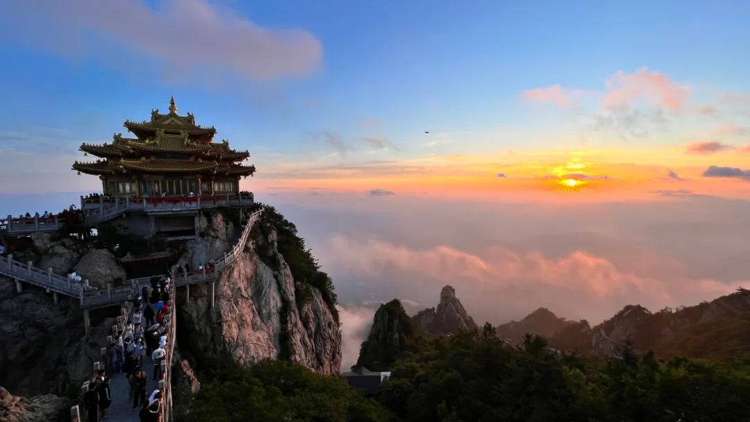 來老君山,看看山頂?shù)臓N爛日出。