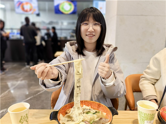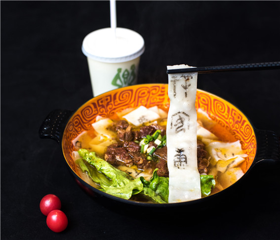 “咱安陽的甲骨文‘卷’出天際!以前,我知道有甲骨文書簽、甲骨文冰箱貼等,現(xiàn)在,竟然連面條上都有了甲骨文!”4月19日中午,在安陽殷墟博物館一樓的子饗餐廳,在鄭州大學(xué)就讀的安陽籍大學(xué)生常瑜像是發(fā)現(xiàn)了“寶藏”,她的午餐正是一碗熱氣騰騰的“甲骨文牛肉面”。