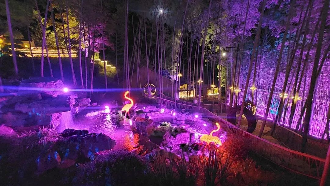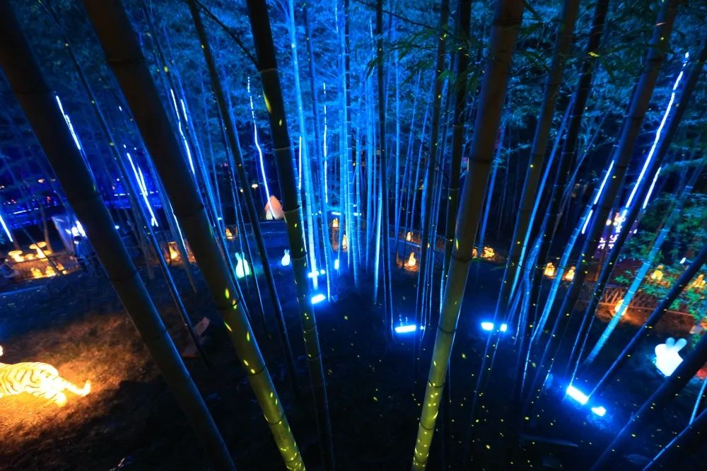 竹寨里面,形色各異的燈光矗立在其中,牽著小對(duì)象走在里面,隨手一拍就是一張漂亮的美圖。