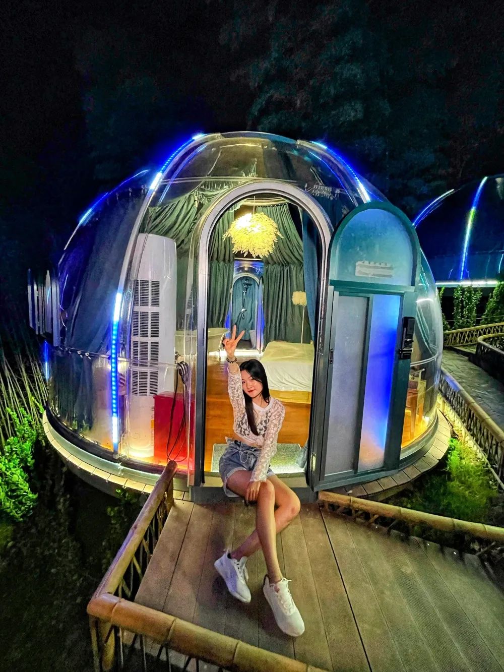 隱藏在密林之中的七彩星空泡泡屋,安靜、祥和、浪漫。