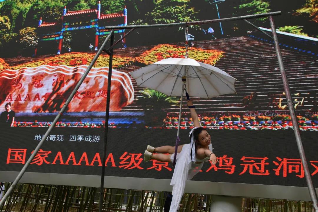 “五一”小長假,為了更好地接待遠(yuǎn)道而來的游客,雞冠洞景區(qū)精心準(zhǔn)備了豐富多彩的文藝節(jié)目,給游客帶來一場視覺盛宴。