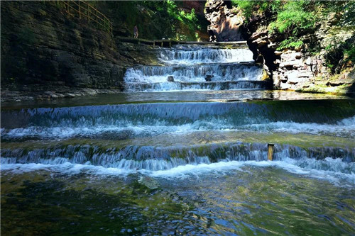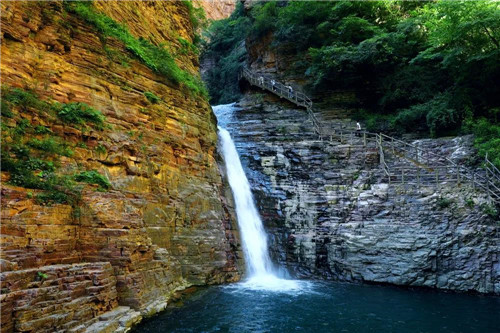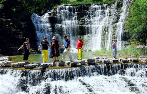 雨后觀瀑,更加壯觀,水流沿石級(jí)層層流下,泛起粼粼的水光,水中垂柳依依,碧波蕩漾,好像從雄偉的太行山一步邁入了俏麗的江南。這里有九連瀑、二龍戲珠、含珠流泉等著名觀景地,讓你流連忘返。這里高山懸瀑落百丈,泉流潭水澄如鏡,沿谷流下的溪水跌落成瀑,瀑落成潭,潭潭相連,構(gòu)成了桃花谷山靈水秀的峽谷風(fēng)韻。