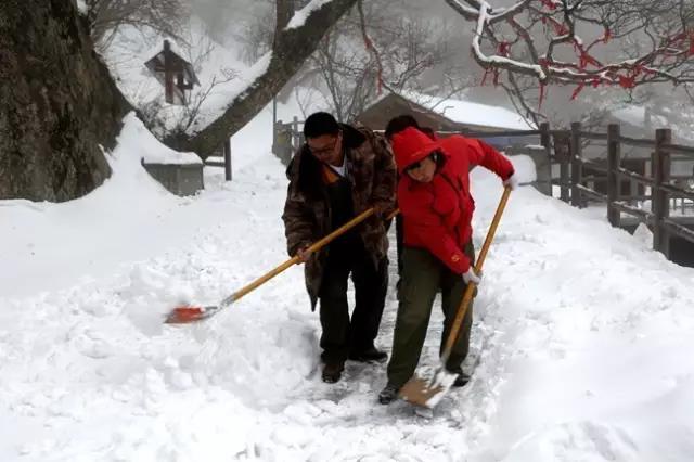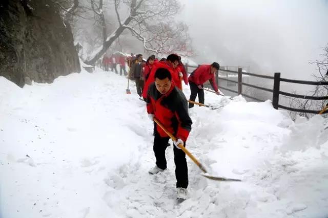 由于連續(xù)的春雪,老君山的道路也被厚厚積雪覆蓋,為了給游客一個(gè)安全的游覽環(huán)境,也為了能讓游客領(lǐng)略到最美的老君山風(fēng)光,老君山人上下集體出動(dòng),參加義務(wù)除雪勞動(dòng)。大雪后的老君山雖美,但更因這一群老君山人而讓大家能夠領(lǐng)略到美景。