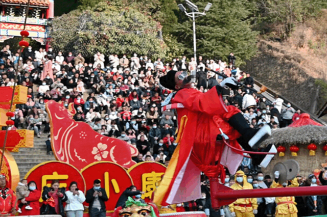 你方演罷,我方登場。雜技藝術團的變臉、噴火、猴子戲山羊、抬花轎等節(jié)目也在景區(qū)多個演出點輪番登臺。