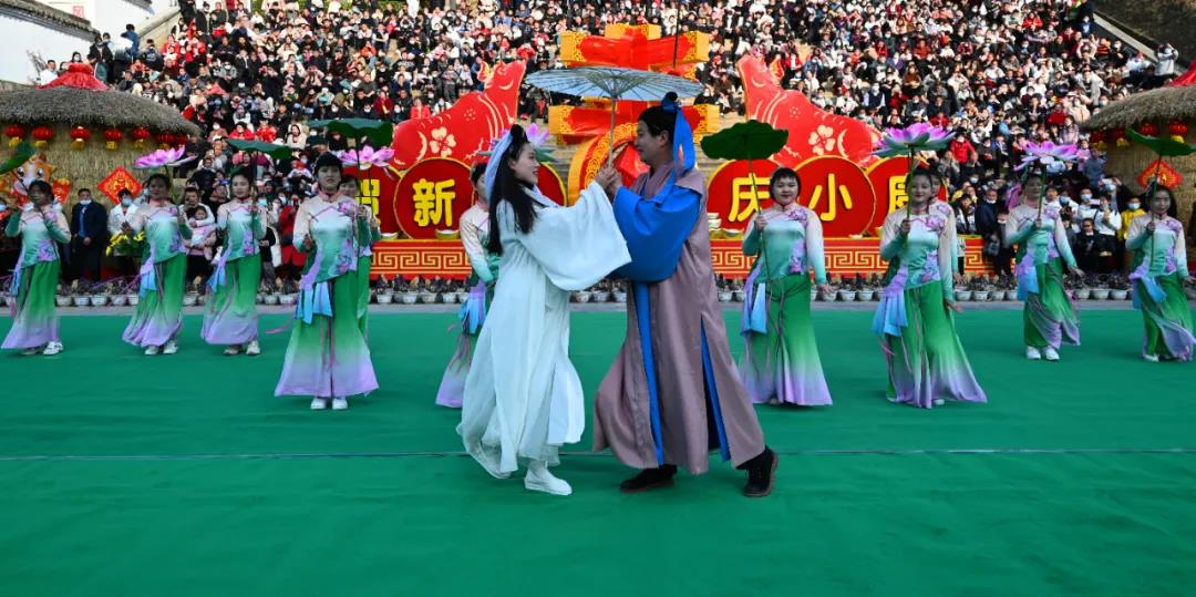 景區(qū)藝術團表演的的舞蹈快閃秀、打花棍、扭秧歌、撐旱船等節(jié)目,贏得游客連連喝彩。