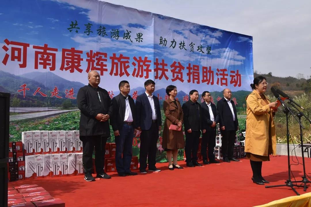 活動開始前,李向東書記首先代表秋扒鄉(xiāng),對一直以來關心和支持秋扒鄉(xiāng)脫貧攻堅及旅游發(fā)展工作的各位領導和各界人士表示感謝。隨后,田洪衛(wèi)代表河南康輝國際旅行社有限公司對此次活動致辭;王西堂代表河南康輝國際旅行社有限公司向秋扒村貧困戶捐贈物品、現(xiàn)金共計2萬余元,為貧困人民送上了溫暖和關愛。
