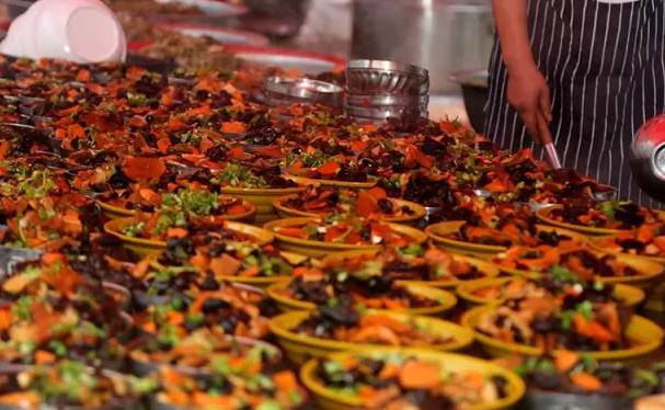 據(jù)了解,本次活動(dòng)由老君山文旅集團(tuán)和河南樂游文旅聯(lián)合舉辦,設(shè)流水席500余桌,以欒川當(dāng)?shù)氐奶厣嬍?ldquo;八大碗”為主菜,近萬(wàn)人用餐。
