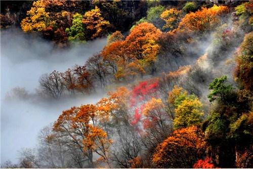 打卡天下第一洞天,王屋山頂秋景斑斕那片云海,紅葉漫山,白色云霧,浩瀚縹緲。