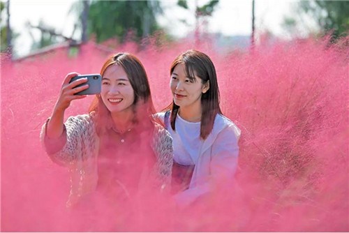 新興網(wǎng)紅打卡地,周末游人如織。萬陽湖畔那片粉黛亂子草,粉色云霧,溫柔綻放,如夢似幻。