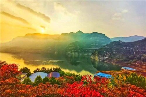 打卡皇家山水,朝陽里的黃河三峽,高峽澄湖大河盆景,漫山紅葉秋意正濃。