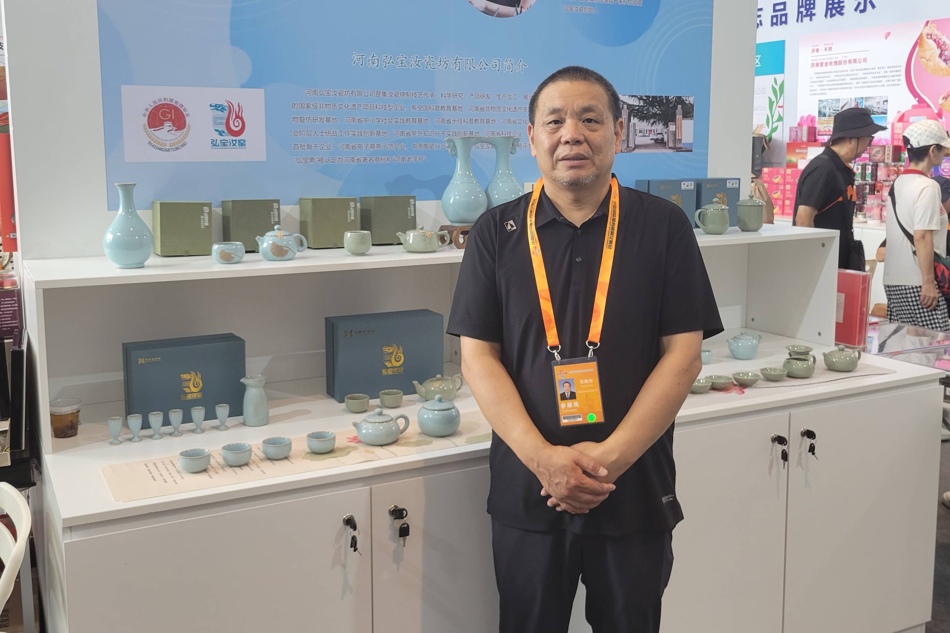 弘寶汝瓷創(chuàng)始人范隨州參展中國國際服務(wù)貿(mào)易交易會(huì)世界地理標(biāo)志品牌展。 汝州市融媒體中心供圖