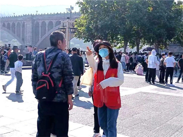 在景區(qū)內(nèi),身著紅馬甲的青年志愿者以實(shí)際行動(dòng)參與到景區(qū)服務(wù)中,無論是提供導(dǎo)覽指引、游客接待、文化活動(dòng)協(xié)助等工作,還是對(duì)于當(dāng)?shù)靥厣朗车耐扑],他們都能用熱情和專業(yè)的服務(wù)給予詳盡的答復(fù),讓游客感受到賓至如歸的溫暖。