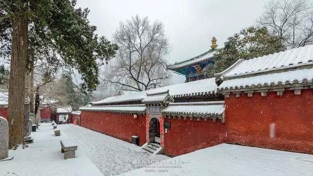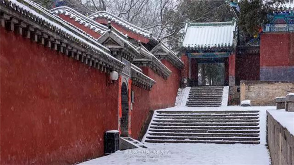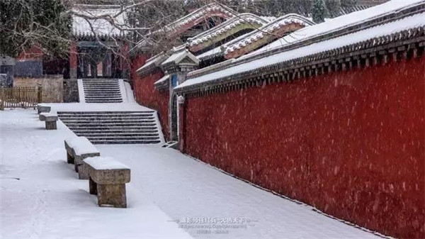 雪落寺墻,似白玉花瓣。又似點(diǎn)點(diǎn)微星墜落凡間。