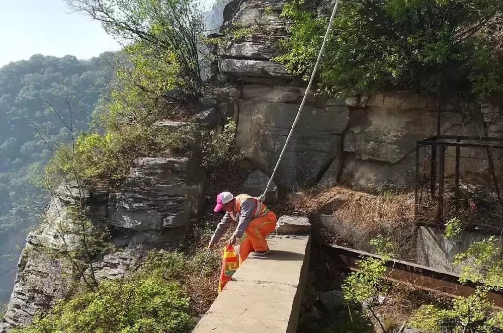 “你看咱的待遇,跟電影明星差不多,成龍拍電影時也是吊著一根繩子在高空中。”五龍口景區(qū)老張笑著說道。老張名叫張紅旗,是五龍口鎮(zhèn)山口村人,打小就在山上爬高上低,對于這片山林,可不陌生。景區(qū)每隔一段時間都會對溝溝壑壑的衛(wèi)生死角進(jìn)行清理。