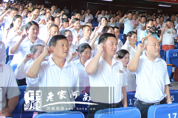 “我宣誓,秉承游客為本、服務(wù)至誠(chéng)核心價(jià)值觀,視品牌為生命,視游客為親人,誠(chéng)信經(jīng)營(yíng),誠(chéng)摯待客,時(shí)時(shí)處處為游客著想,不讓一名游客在欒川受委屈......”8月1日,河南省欒川縣上千名旅游從業(yè)人員宣誓,不斷提升服務(wù)水平,踐行“游客永遠(yuǎn)是對(duì)的”理念。