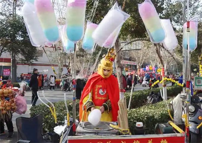 堅(jiān)守沒變。色彩艷麗的魏氏面塑、火紅喜慶的王增書剪紙、活靈活現(xiàn)的蛋殼彩繪......非遺項(xiàng)目“悉數(shù)登場(chǎng)”,眾多游客駐足參觀。在吹糖人攤位前,手藝人將熬好的糖稀放在嘴邊,輕輕一吹,再用手指巧妙塑形,一個(gè)個(gè)活靈活現(xiàn)的小動(dòng)物躍然眼前 。