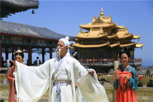 伴隨一陣清揚悠婉的絲竹仙音,道祖老子在道童仙子的隨侍下緩步登場。