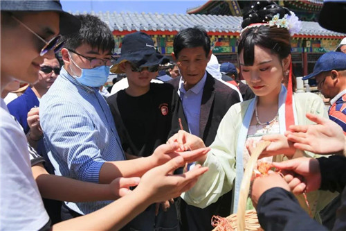 蘊含獨特民族精神與豐富文化內(nèi)涵,端午節(jié)綁五彩繩的習俗也是由來已久,現(xiàn)場,景區(qū)為大家準備了數(shù)量充足的精致手工五彩繩,供大家領(lǐng)取佩戴,驅(qū)邪避禍。