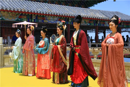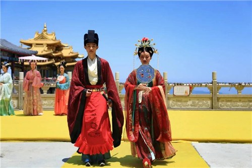 十位來自不同“朝代”的小哥哥小姐姐,身著華美漢服,儀態(tài)動人,款款而來,小哥哥落落大方,玉樹臨風;小姐姐楊柳細腰,仙姿玉色;他們儀態(tài)萬方,顧盼生姿,向大家展示了傳統(tǒng)文化最浪漫的一面。