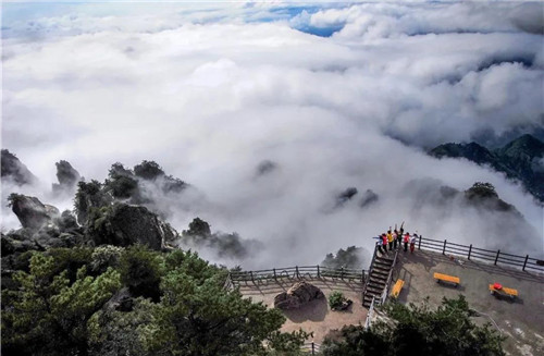 青空如鏡,綠蔭環(huán)翠,此時的老君山,氣溫清涼宜人,環(huán)境清幽舒適,風光迷人,好景如畫。