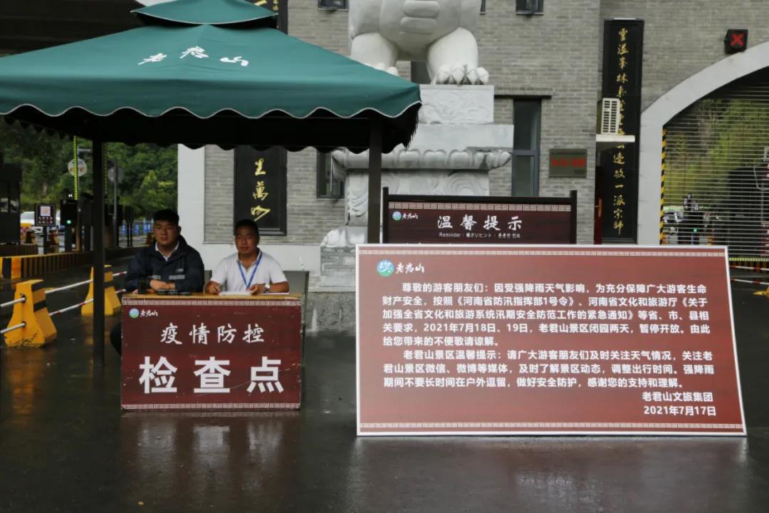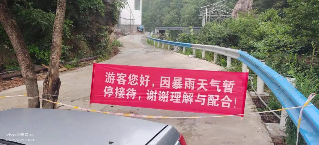 景區(qū)第一時間在微信、微博、景區(qū)電子屏等處發(fā)布公告,提醒游客景區(qū)將于7月18、19日暫停開放。對已經(jīng)進入景區(qū)的游客進行勸返。