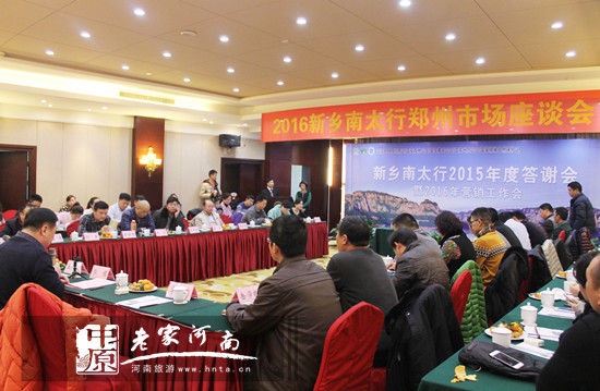 2016年1月14日,為進(jìn)一步開拓鄭州市場(chǎng),加強(qiáng)與鄭州旅行社的溝通與合作,答謝廣大加盟商、旅行社和媒體朋友,新鄉(xiāng)南太行旅游集團(tuán)在大河錦江飯店舉行2015年鄭州市場(chǎng)座談會(huì)。