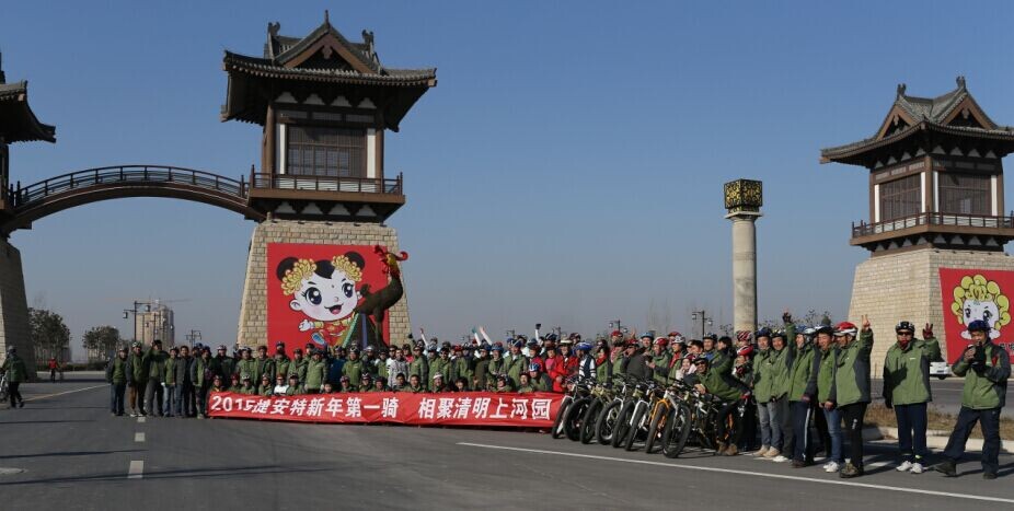 2015年1月1日,新年伊始,天朗氣清。 當(dāng)天,參加“2015年捷安特新年第一騎”游客們風(fēng)風(fēng)火火、浩浩蕩蕩,他們颯爽的身姿為清明上河園景區(qū)帶來(lái)了別樣的色彩。據(jù)了解,此次捷安特2015新年第一騎活動(dòng)由河南省旅游局組織,已成為連接鄭州開(kāi)封兩地情懷、凝聚廣大騎友迎接新年的一項(xiàng)傳統(tǒng)活動(dòng),目的就是促進(jìn)全民健身和文明旅游的深入開(kāi)展,進(jìn)一步提高廣大群眾的身體素質(zhì)和健康水平,讓所有的人都動(dòng)起來(lái),放棄開(kāi)車,以騎車的方式為我們社會(huì)更好的健康綠色的環(huán)境做出自己的一份貢獻(xiàn)。