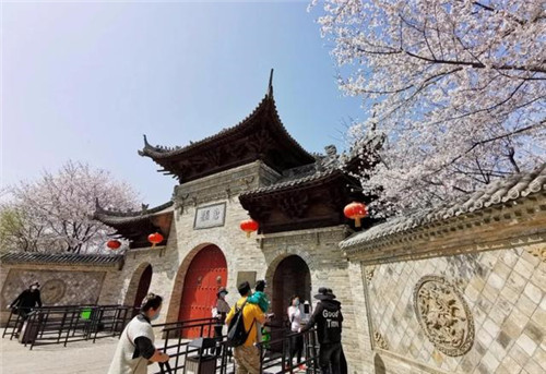 15時,游客可以到唐韻櫻花園游覽。該園有近萬棵櫻花,20多個品種;數(shù)棟明清古建民居與園林景觀相映成趣。