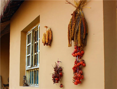辣椒、高粱成串掛上墻,除卻感受到的豐收喜悅,別是一番愜意、淳樸的農(nóng)家秋景。