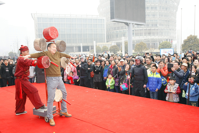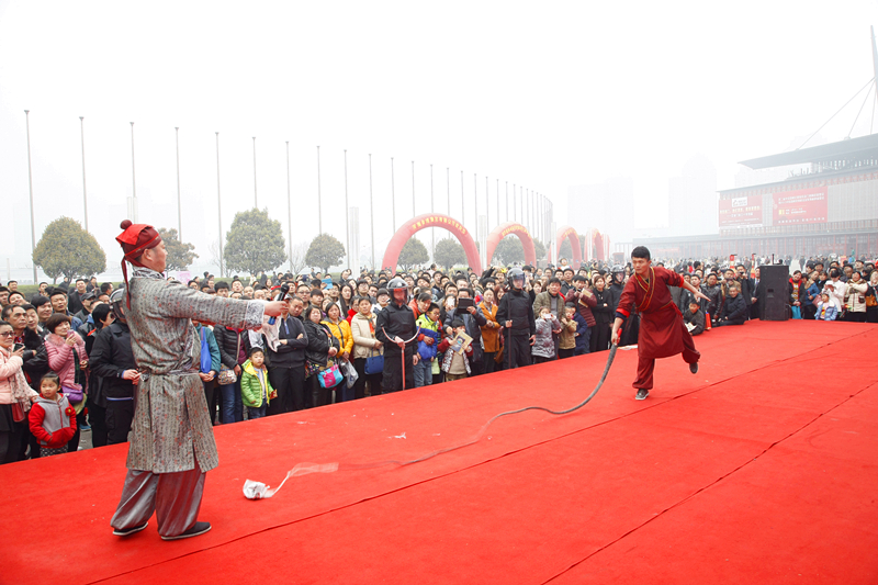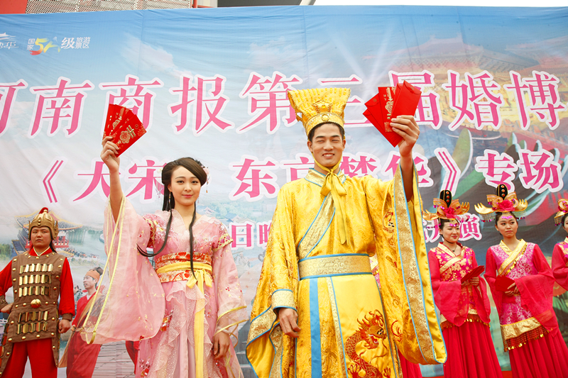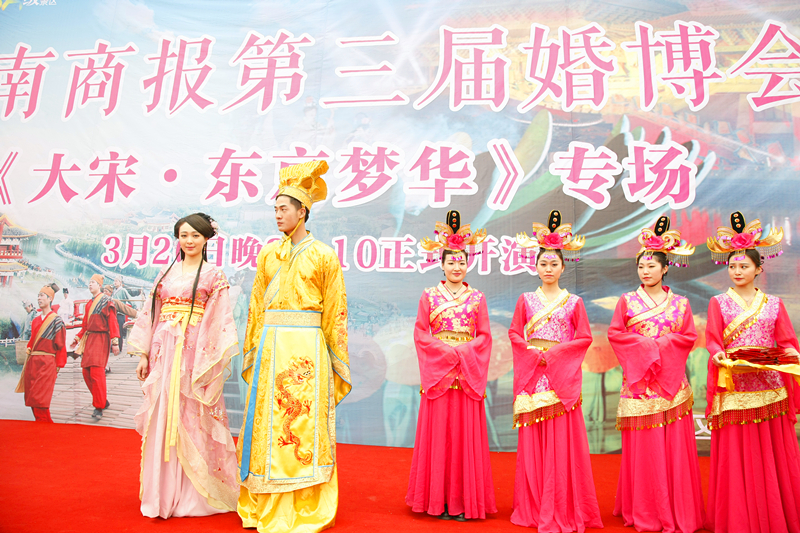 2015版大型水上實景演出《大宋·東京夢華》3月20日震撼首演。昨日,宋徽宗攜李師師,以及其他眾愛妃風(fēng)風(fēng)火火光臨鄭州如意湖,來到河南商報第三屆婚博會現(xiàn)場發(fā)放紅包,引起大家熱情關(guān)注;顒蝇F(xiàn)場,清明上河園民俗表演大師親自為大家展示驚險絕活,游客紛紛拍手叫好!
