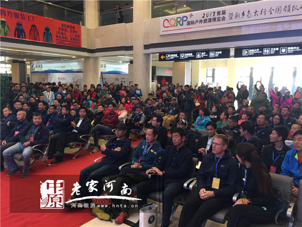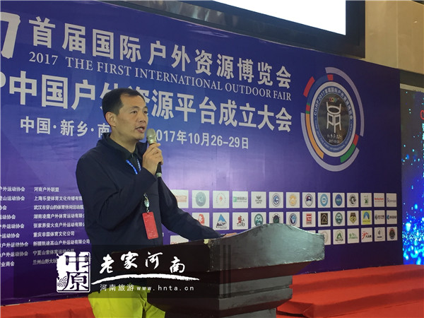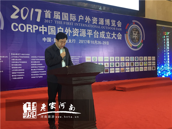 10月26日上午,2017國(guó)際戶外資源博覽會(huì)暨新鄉(xiāng)南太行全國(guó)戶外領(lǐng)隊(duì)峰會(huì)開(kāi)幕式在新鄉(xiāng)南太行八里溝旅游服務(wù)中心舉行,出席本次開(kāi)幕式的有新鄉(xiāng)南太行旅游有限公司總經(jīng)理王紅昌、遼寧省登山戶外徒步協(xié)會(huì)秘書長(zhǎng)喬浩、內(nèi)蒙古登山協(xié)會(huì)會(huì)長(zhǎng)吳濤、四川省登山戶外運(yùn)動(dòng)協(xié)會(huì)秘書長(zhǎng)高敏及其他省市的登山運(yùn)動(dòng)協(xié)會(huì)會(huì)長(zhǎng)、主席,此外參加本次開(kāi)幕式的還有來(lái)自全國(guó)30余省、市、地區(qū)的社團(tuán)組織、企業(yè)代表和戶外愛(ài)好者。