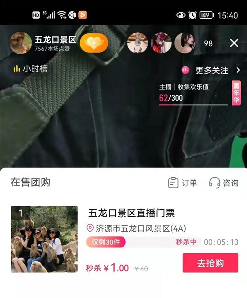 下午3點(diǎn),繼續(xù)帶大家搶購(gòu)1元門票,中國(guó)人不騙中國(guó)人,滿滿的誠(chéng)意,進(jìn)入五龍口景區(qū)抖音直播間。