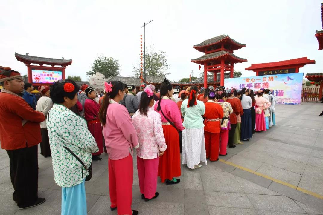 2016年,開封清明上河園景區(qū)聯(lián)合眾多單位在迎賓門廣場舉行了“愛心一日捐”慈善活動。