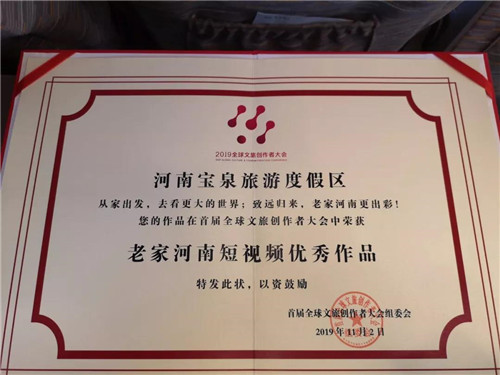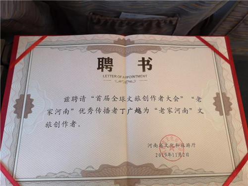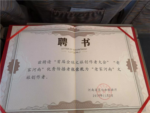 領(lǐng)取“老家河南”金杯作品證書(shū)