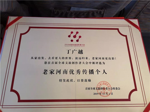 ►老家河南優(yōu)秀傳播個(gè)人: