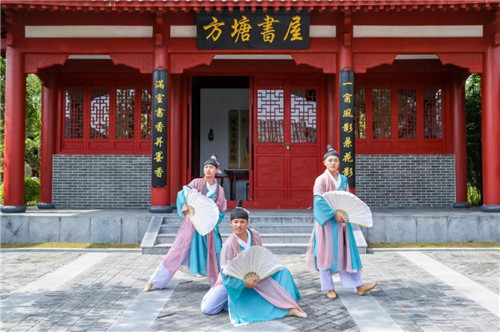 城市展園內(nèi),《麗人行》、《紙扇書生》等古典舞,充分展現(xiàn)了漢唐古典舞的優(yōu)美風(fēng)姿。