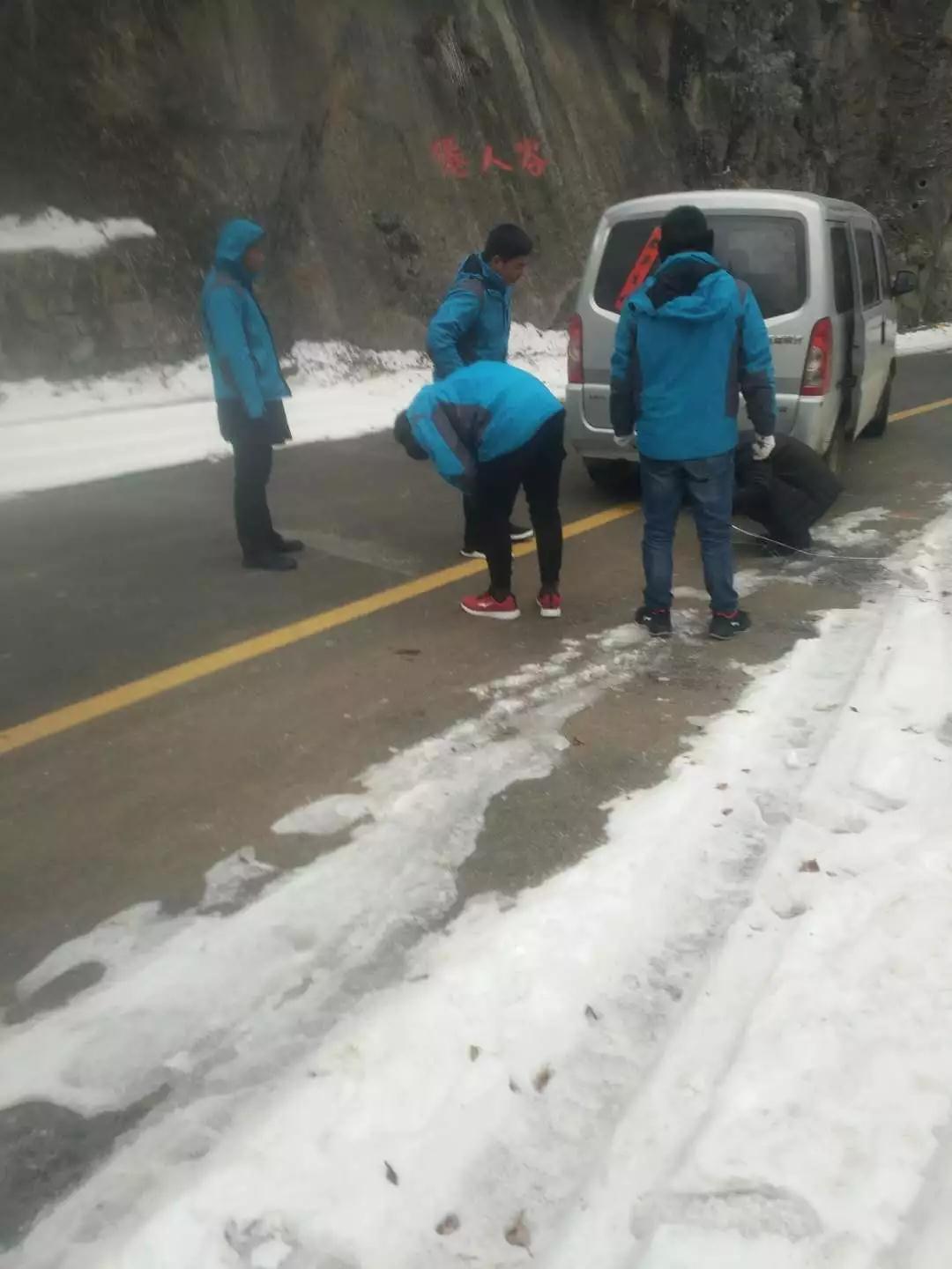 “接到求助電話,我們立即組織距離最近的值班同事前去救援。”景區(qū)當(dāng)天值班領(lǐng)導(dǎo)說。隨后,值班領(lǐng)導(dǎo)也趕到了事發(fā)地點(diǎn)。當(dāng)時已經(jīng)是下午四點(diǎn),前一天氣溫驟降,山上只會更冷,游客很是著急,饑寒交迫。然而,車子的情況不容樂觀,必須先移至安全地帶。景區(qū)辦公室立刻協(xié)調(diào)四驅(qū)越野前去救助,七八個人前拉后推,合力將車拖上望云嶺大坡,卻發(fā)現(xiàn)車輛能打著火但就是不能加油,一加油就熄火。