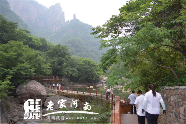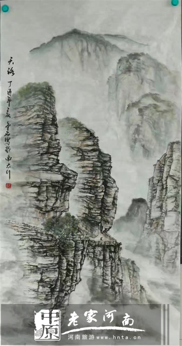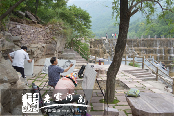 2017年6月13日上午,三名畫(huà)家在新鄉(xiāng)八里溝景區(qū)“桃花灣”寫(xiě)生,將近處新建的旅游設(shè)施和遠(yuǎn)山繪入畫(huà)中。自2015年,新鄉(xiāng)八里溝開(kāi)始創(chuàng)建國(guó)家5A級(jí)景區(qū),兩年多來(lái),旅游基礎(chǔ)設(shè)施發(fā)生了顯著變化,那一處處風(fēng)景就是一部山水畫(huà)卷。