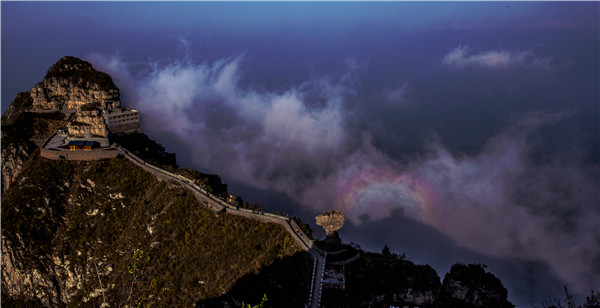 轎頂山人記憶中的夏是沒有“悶熱”“高溫”“驕陽似火”等字眼的。在涼爽的環(huán)境中,唯一的記憶便是那浩瀚無常的云海了。說它無常是對(duì)的,因?yàn)樗偸窃谀悴唤?jīng)意的時(shí)候悄悄地出現(xiàn)在你的身旁,或是早晨,抑或是一場小雨的纏綿之后。