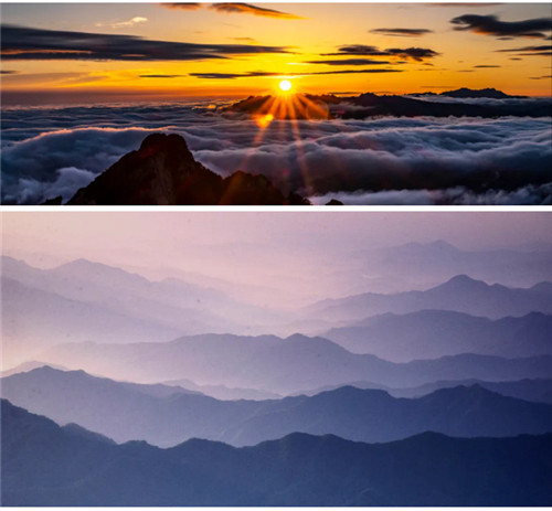 海拔2216米的白云山玉皇極頂,是中原地區(qū)最高的山峰,在這里可以盡覽八百里伏牛山主峰盛景,觀中原地區(qū)最壯觀的云海日出。拂曉時(shí)刻,云海恣肆,山巒起伏,林木浮蕩……少時(shí),旭日噴薄欲出,色彩斑斕,天山一色,山岳形勝,朝暉萬(wàn)千……回味無(wú)窮的日出盛景,令人終身難忘。