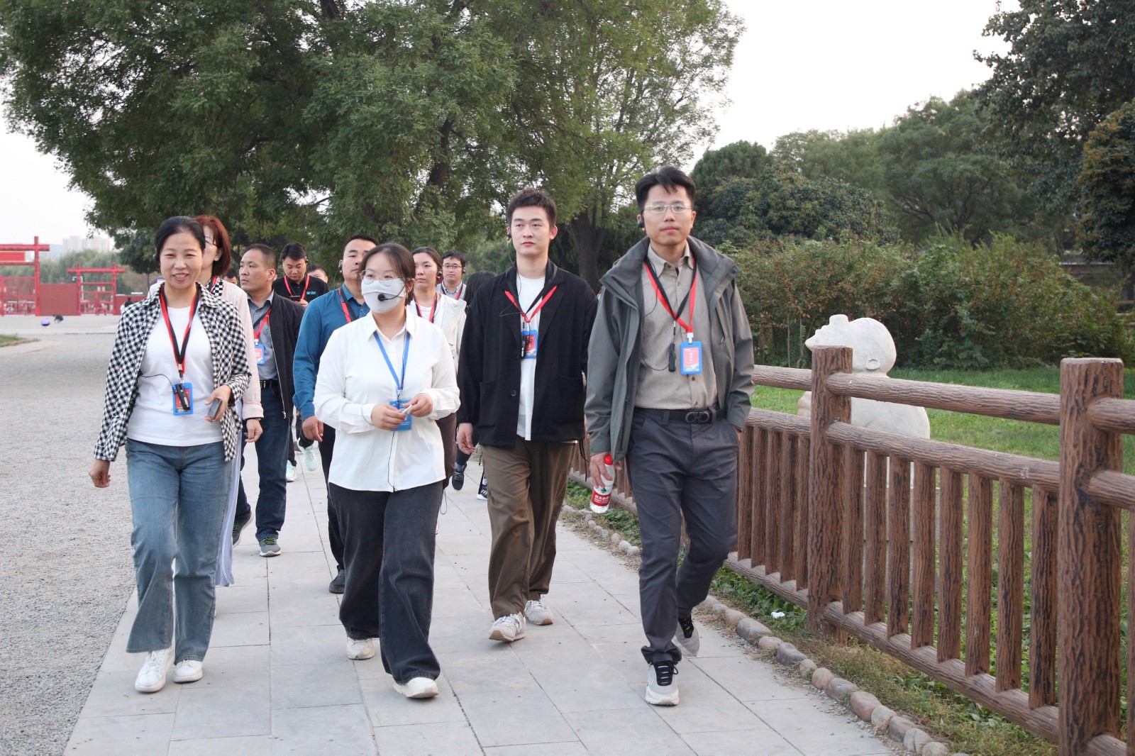 甲骨窖穴、碑廊、婦好墓……一路走來(lái),除了了解殷商歷史,感受甲骨文、青銅器的風(fēng)采,記者們?cè)谝笮鏄?biāo)志性建筑旁駐足留影。